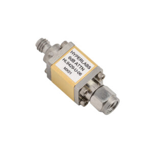 HYPERLABS offers ultra-broadband attenuators with a typical fixed insertion loss of 3 dB, 6 dB, or 10 dB and a very flat frequency response from DC to 110 GHz.